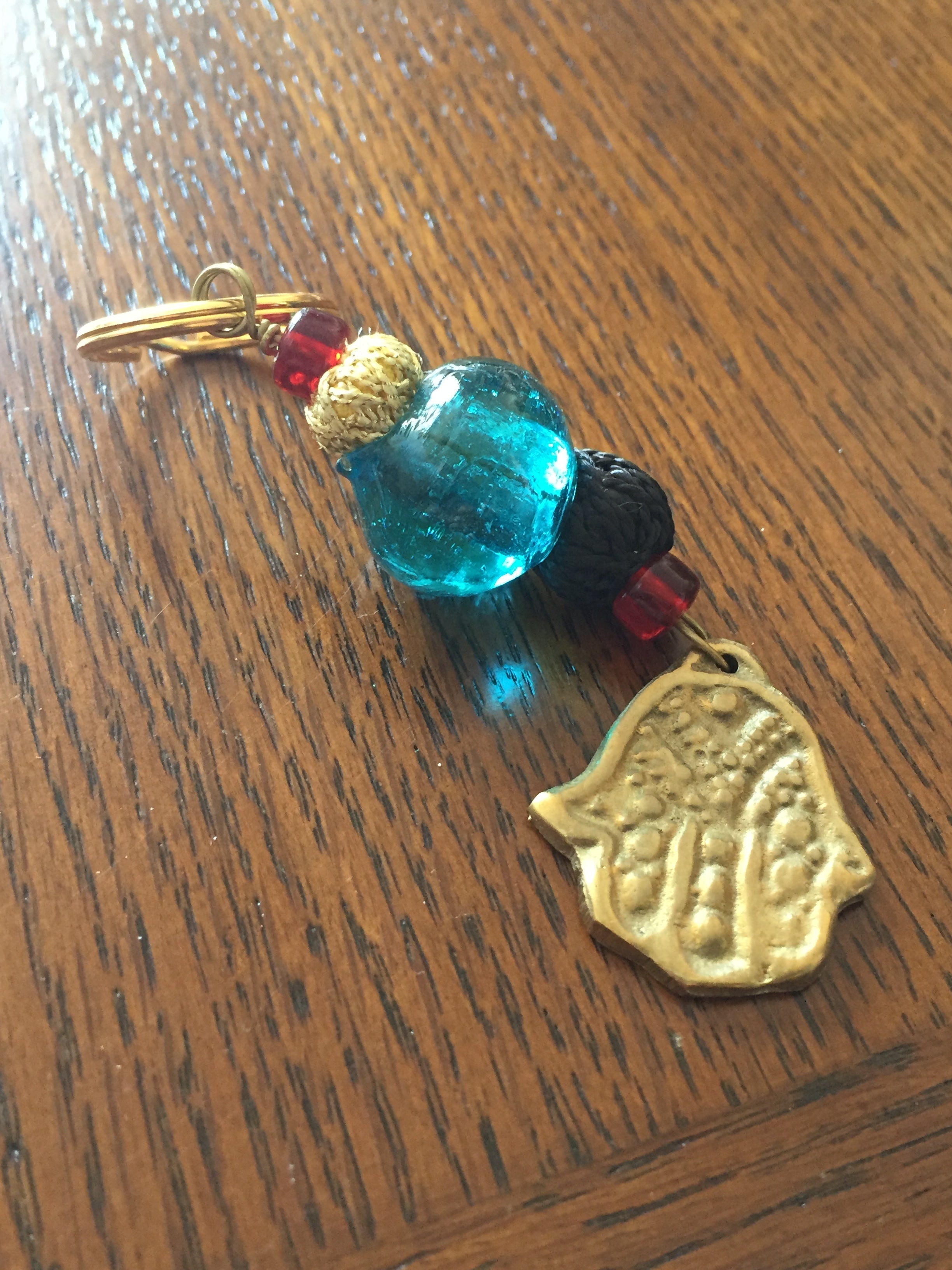Beautiful handmade brass key chain in the shape of a hamsa. Created by artisans in Egypt.