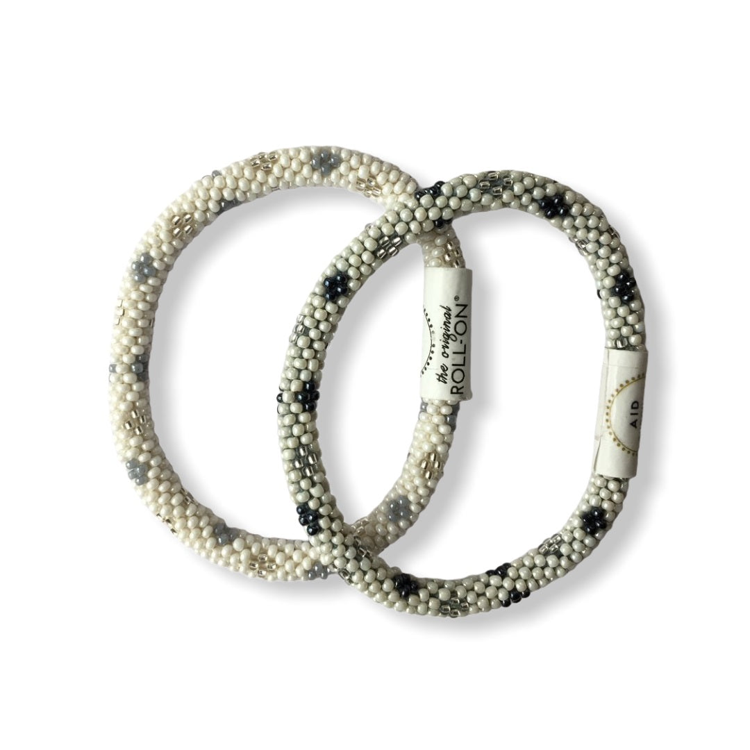 Beautiful Fair Trade Roll-On® Bracelets made with the highest quality glass beads and carefully hand-dyed cotton thread.