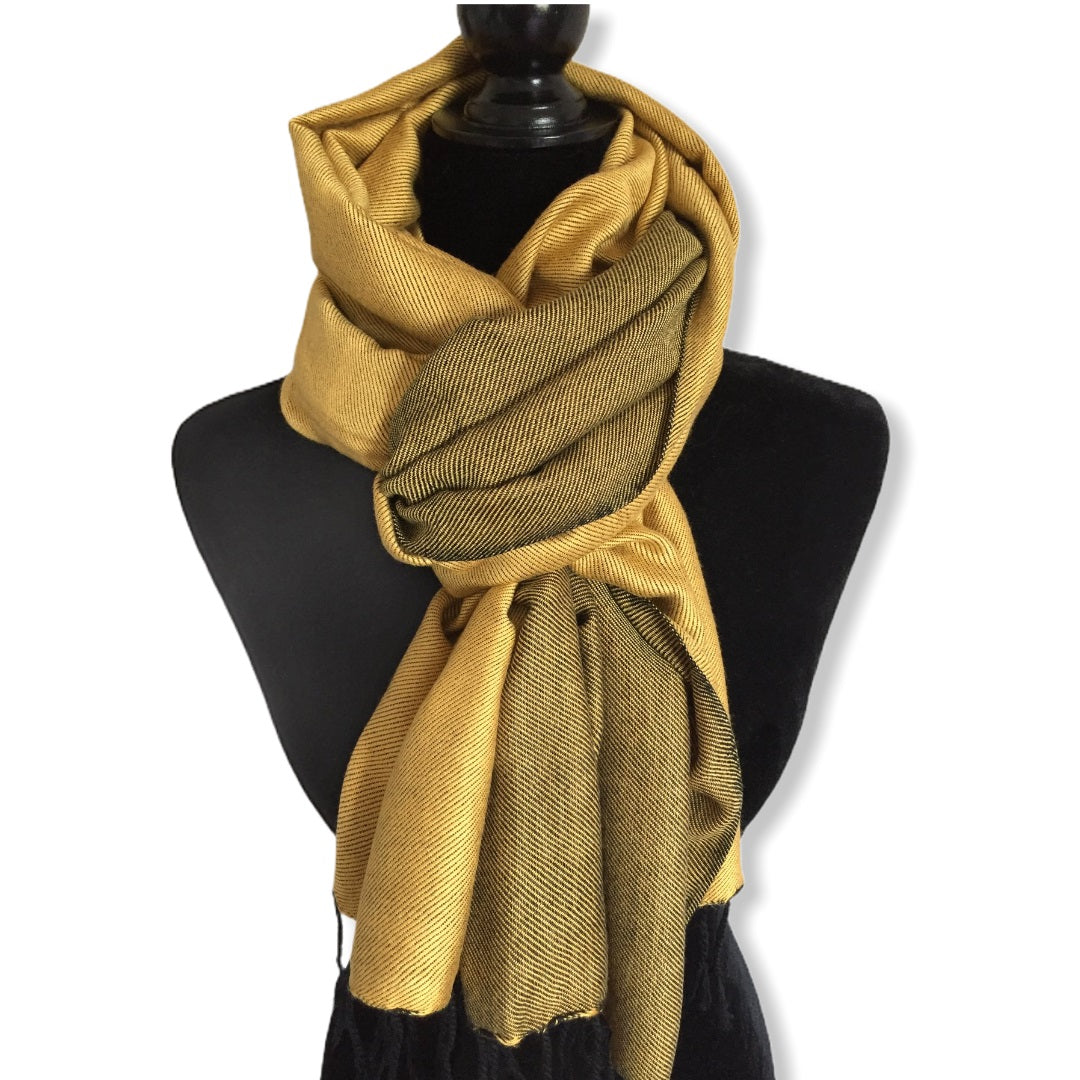 • Double-faced shawl with subtle diagonal pattern that can be worn in multiple ways