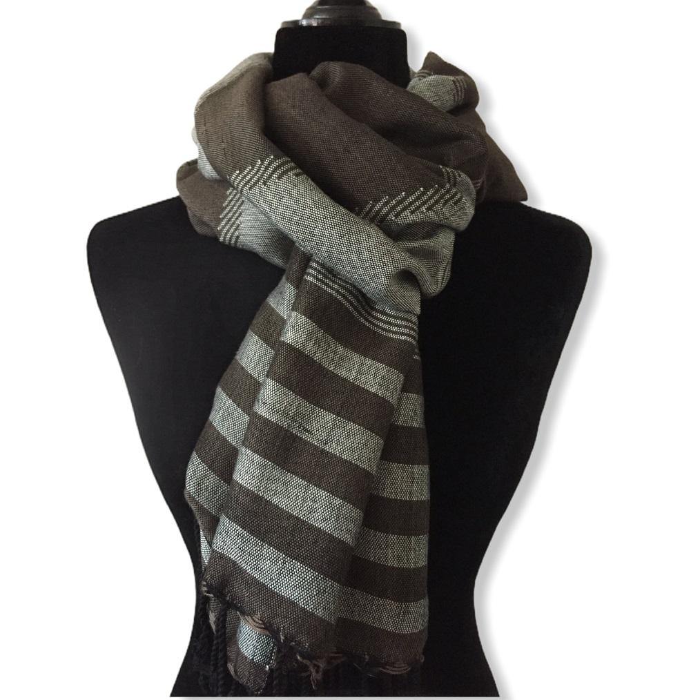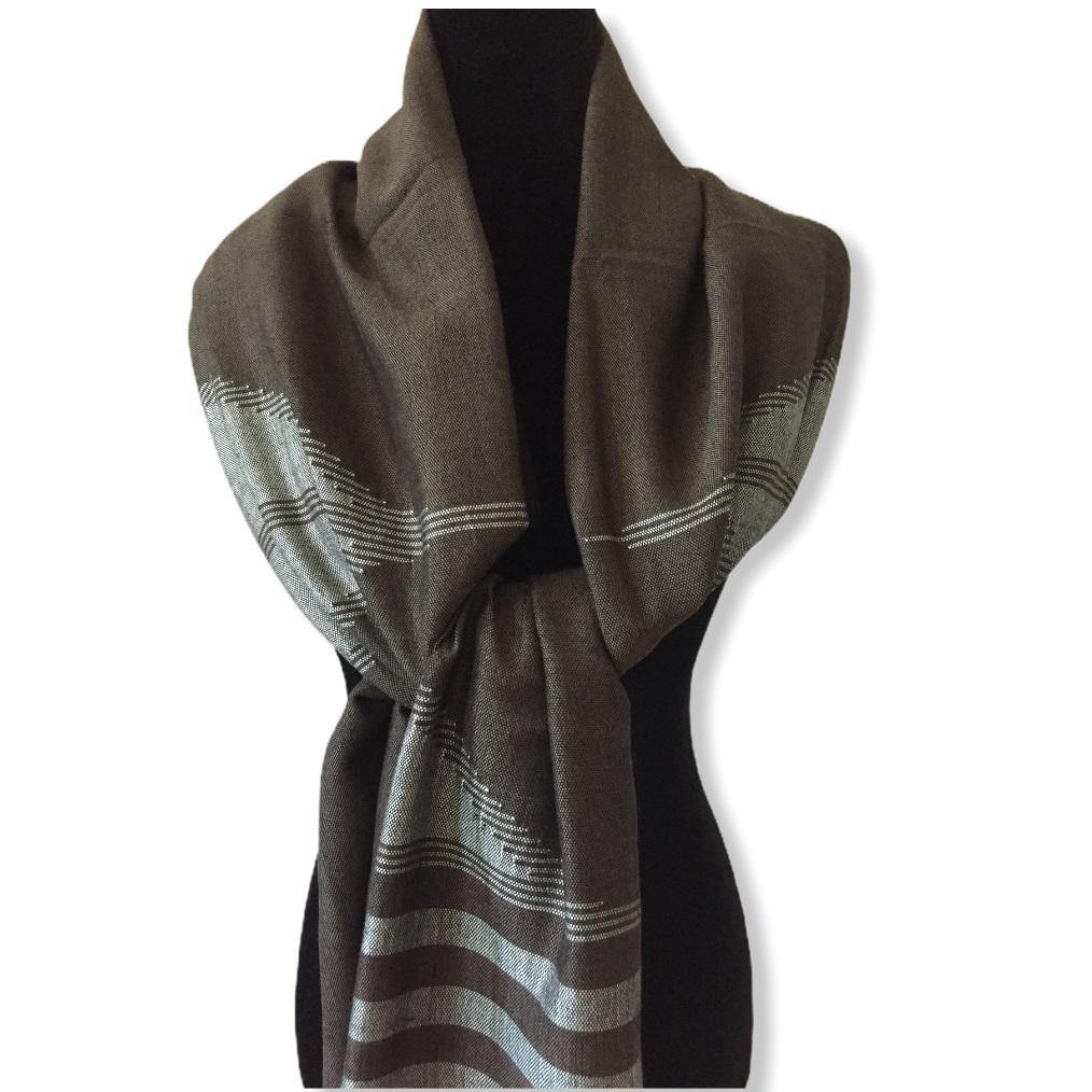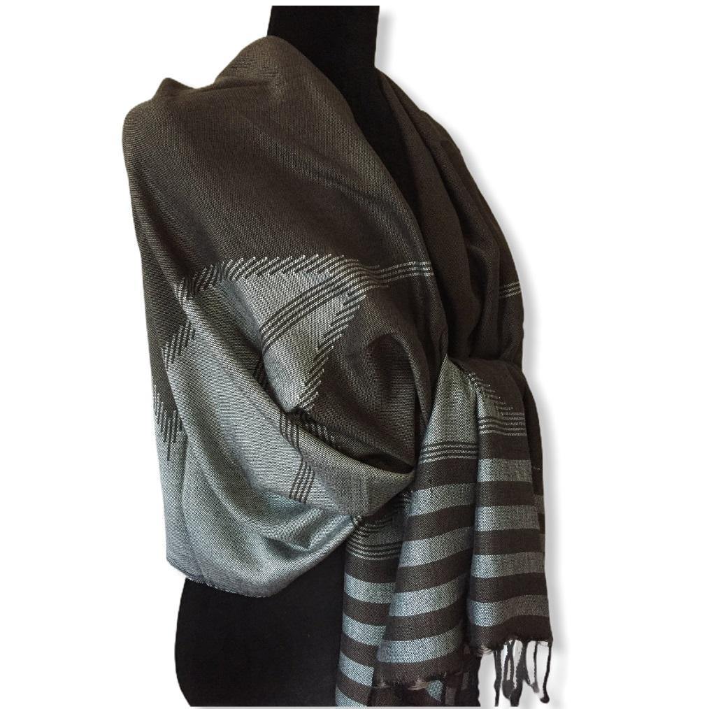 Geometric Handwoven Shawl - Cappuccino & Silver