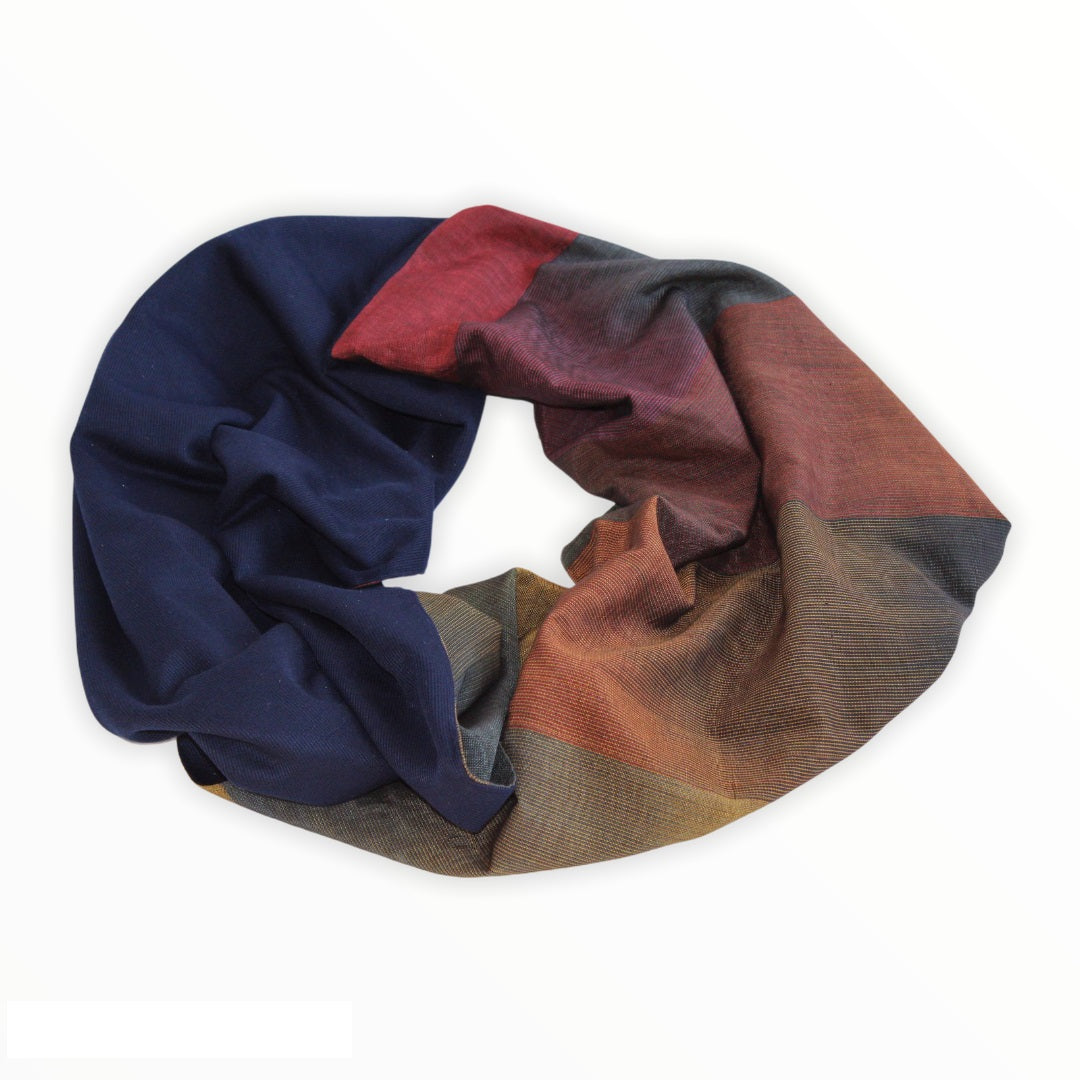 - Double-faced infinity shawl with one side made of multicoloured moiré and the other side of jersey