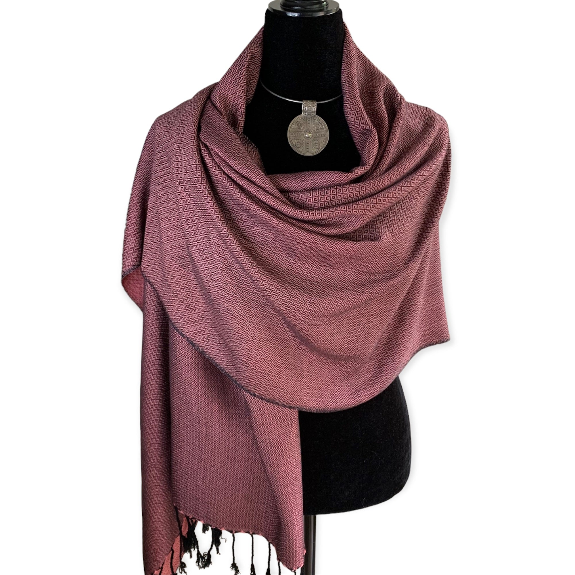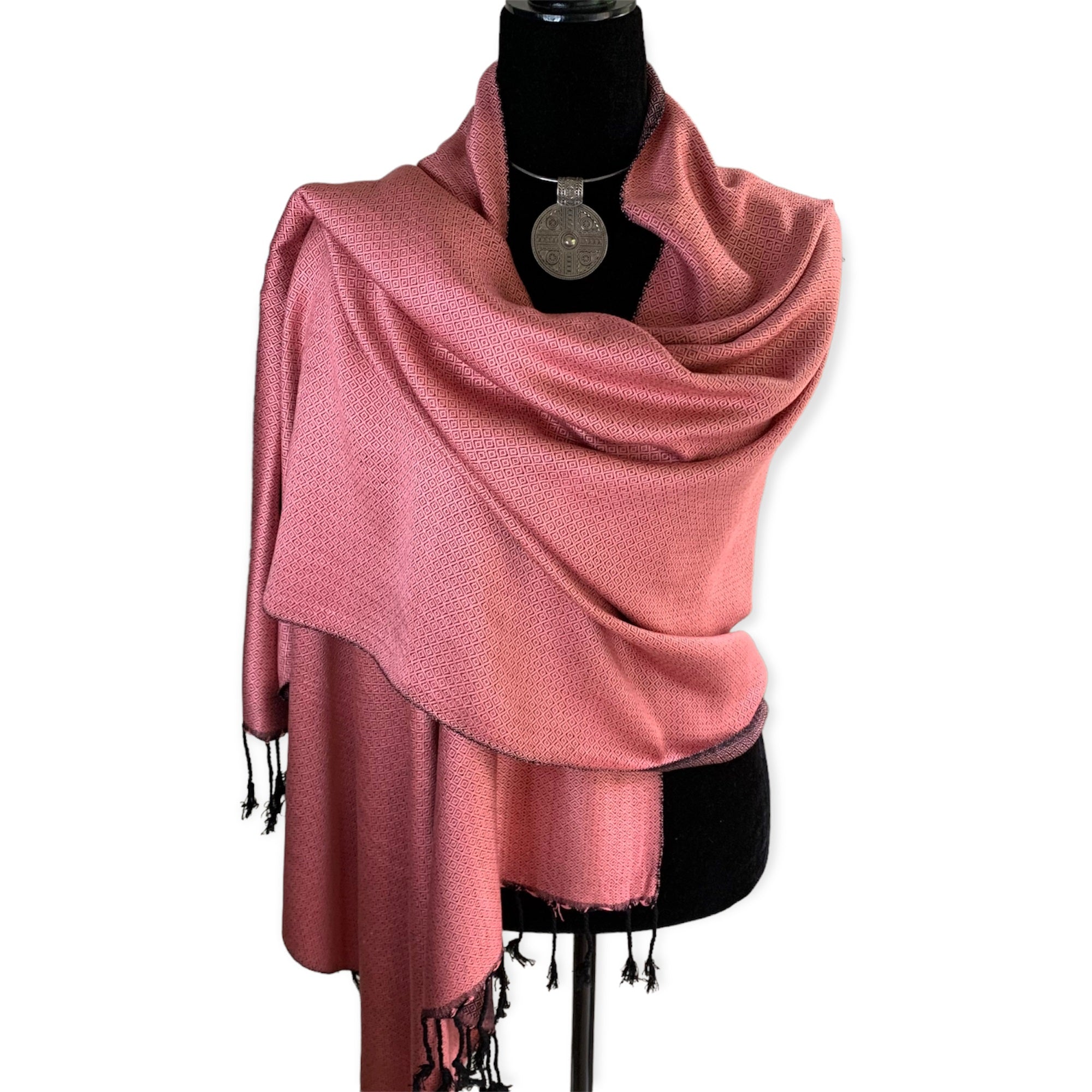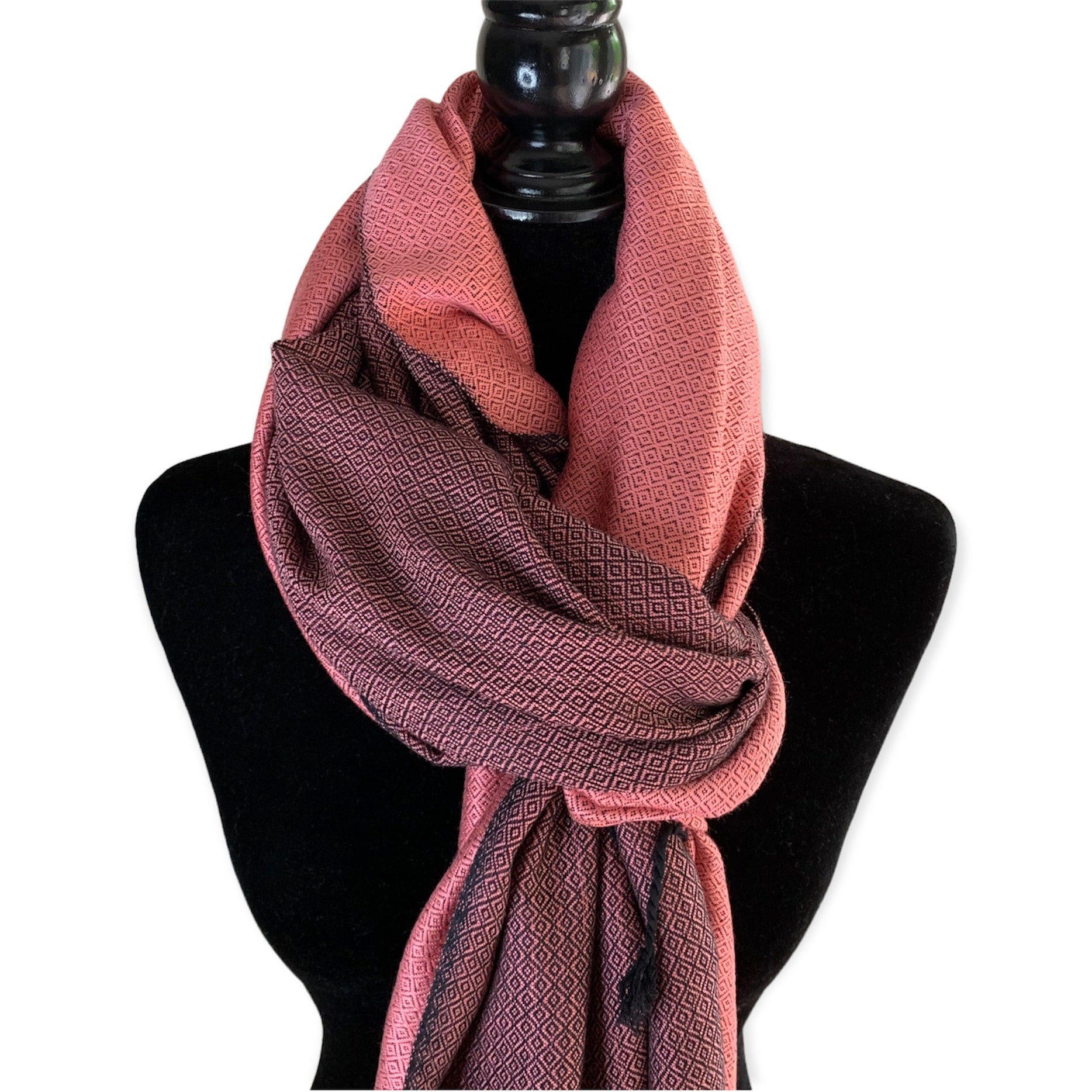 Reversible Diamond Handwoven Bamboo Viscose Shawl - Pink