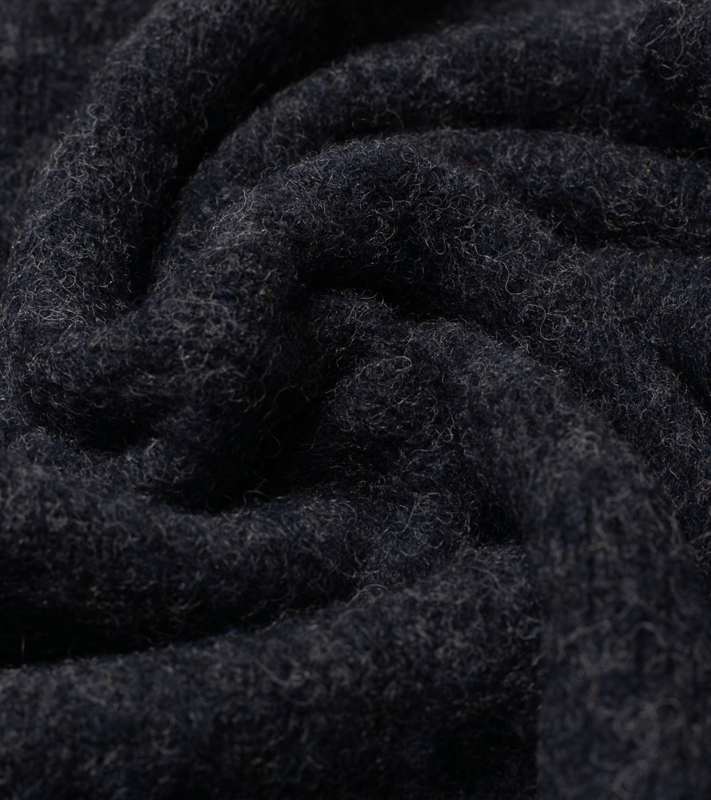 Woven from Shetland yarn and brushed to a fuzzy, shaggy volume, it has an almost accidental whimsy - it��s soft and cosy to be warm and robust. Soft focus saturation that can make the inkiest shade approachable.