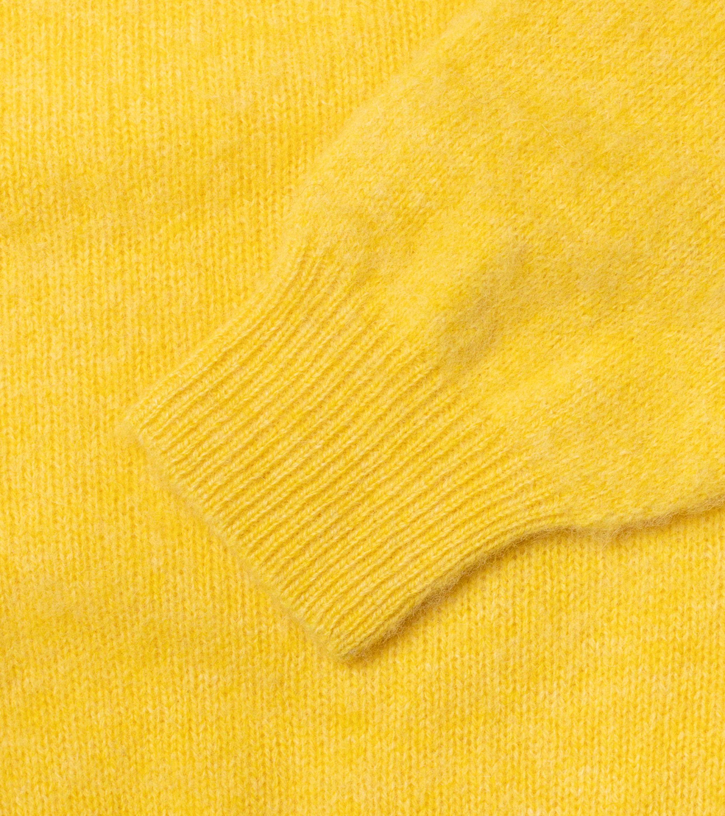 For us a brushed Shetland with its saddle shoulder and close sitting crew neck, is as applicable worn like a tee as it is a layering piece over Oxford cloth, as its shorter length allows. And knowing how well it tempers the most saturated of colours, we have lemon zest yellow, rosebud pink, cream and pecan to make the greyest of winter days a little more hopeful.