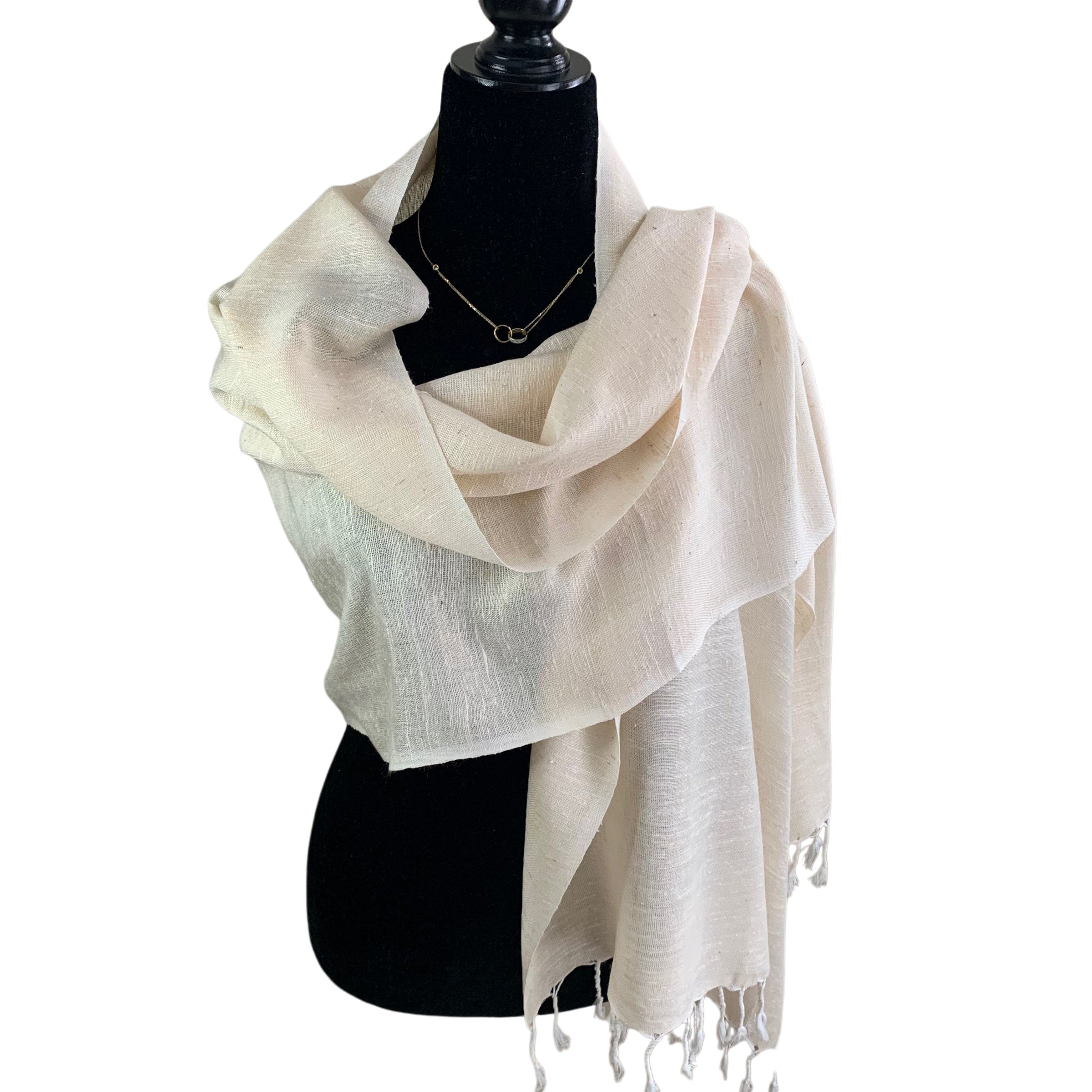 - Fair trade, ethically sourced scarf with a boucl茅 texture and delicate fringes on the ends